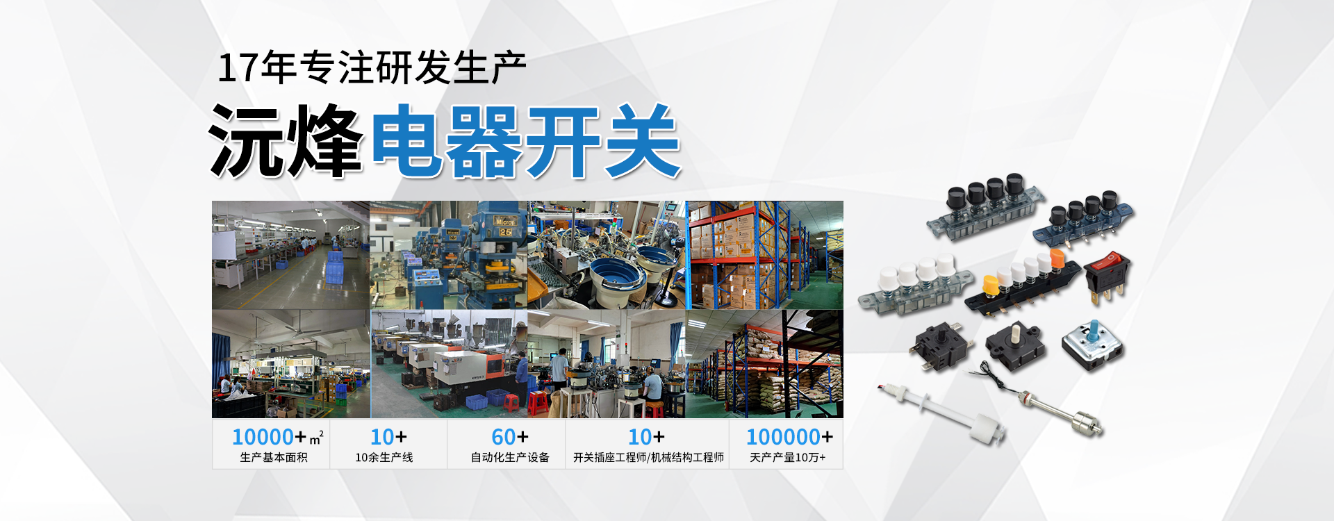 主要生產(chǎn)浮球開(kāi)關(guān)、接近開(kāi)關(guān)、琴鍵開(kāi)關(guān)、旋轉(zhuǎn)開(kāi)關(guān)、微動(dòng)開(kāi)關(guān)、船型開(kāi)關(guān)、拉線開(kāi)關(guān)以及接線座等系列產(chǎn)品。